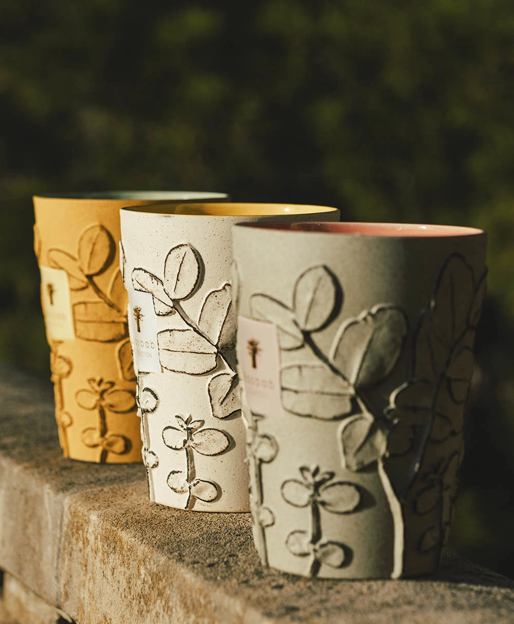 Our ceramic candle collections are a reminder of a noble material from the earth, the one we knead, mold and glaze. All our ceramics are handmade in Portugal. A mold is first developed and reproduced in all our sizes. The material is poured into it and then dried and hardened. After a few days, the object is taken out of the mold and plunged into the glaze to cover it with color. This is when the final transformation takes place: the piece is fired at very high temperatures in a kiln. The magic of the material and the work of craftsmen who practice the same gestures from generation to generation.
