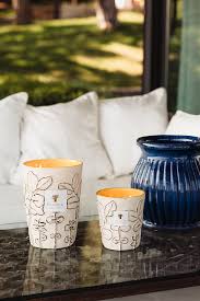 While the ceramic is glazed in a matte shade of white on the outside, the inside is finished in a glossy yellow glaze, giving the piece a contrasting effect, reminiscent of the colour of the Mediterranean sun.